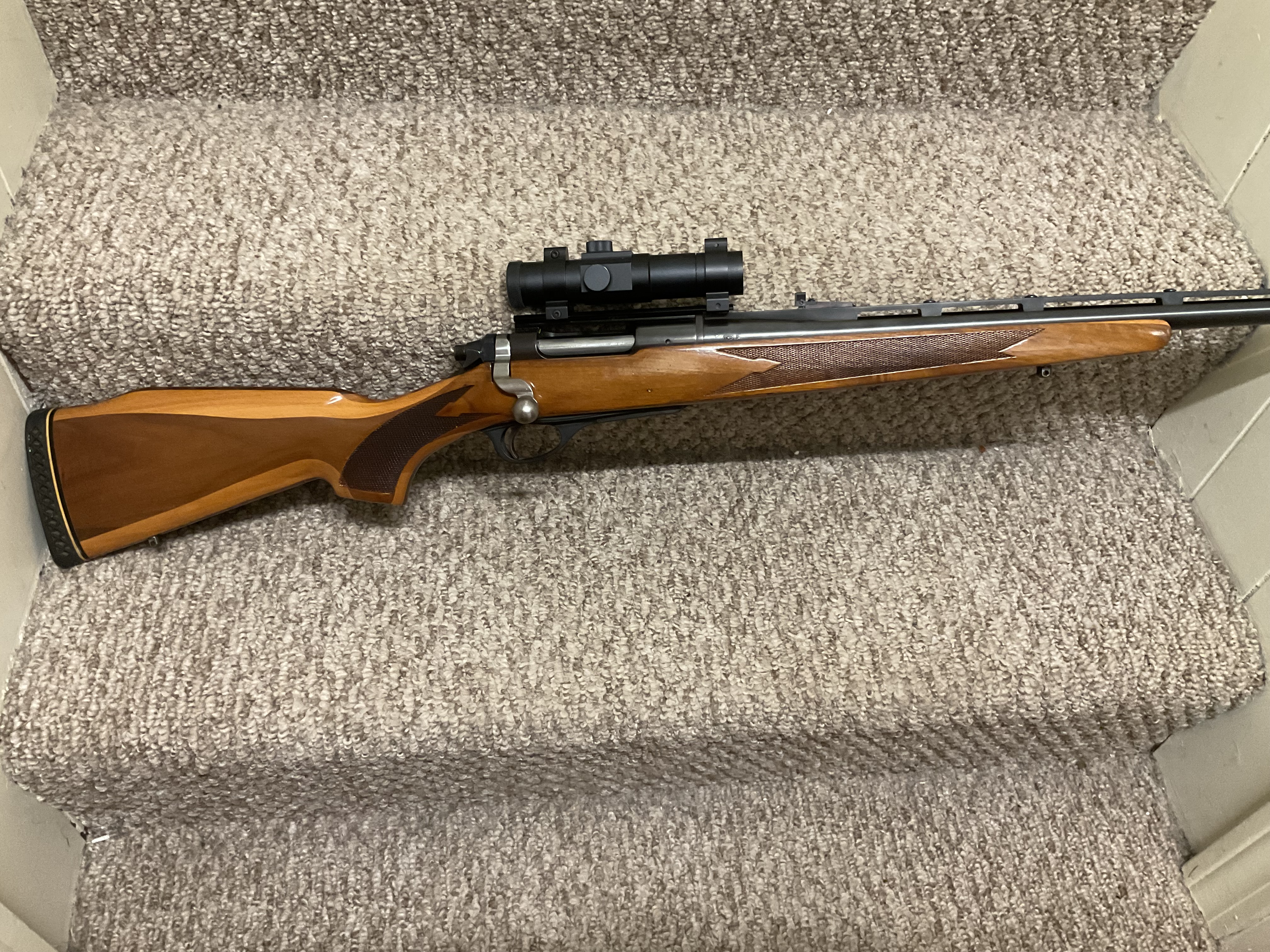 This rifle has been sitting in my safe for over 35 years. Rifle is in great shape. The stock has few very little safe nicks. I would give the rifle a 95% to 98% for its overall condition. The rifle comes with an extra 600 plastic magazine trigger guard , plastic ventilated rib and a nice Butler camo finish stock. Has a cheap throw away electric red dot scope. Not sure if it works or not.