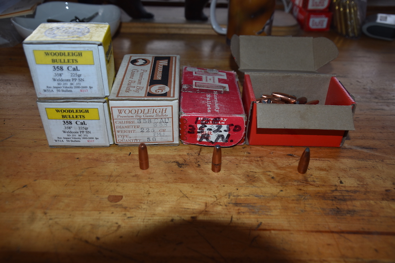 One opened but full box of 50 Woodleigh 225 grain FMJ bullets. $80 for the box.