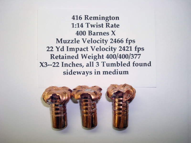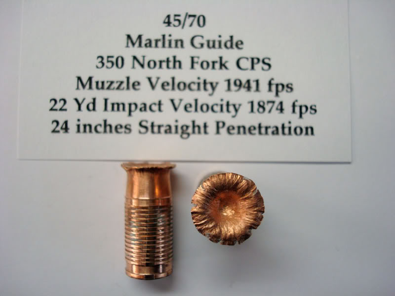 2. 450 gr Swift A Frame 458 B&M Buffalo various, 3 recovered Bullets I believe just at or around 2200 fps Weight 444 gr diameter .785 average.......