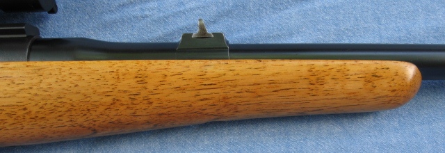 The stock was stripped of its finish, dents were raised, oil damaged wood was repaired, and the stock received a new hand-rubbed oil finish. Action was converted to cock on opening with a Dayton Traister speed lock kit which includes a Mark II trigger, custom striker spring, and cocking piece. Precise Metalsmithing (Wisner) two-position safety was installed. The action was glass bedded. The work was performed by my friend Todd Johnson (deceased) of Lone Star Armory in Pearland, Texas.