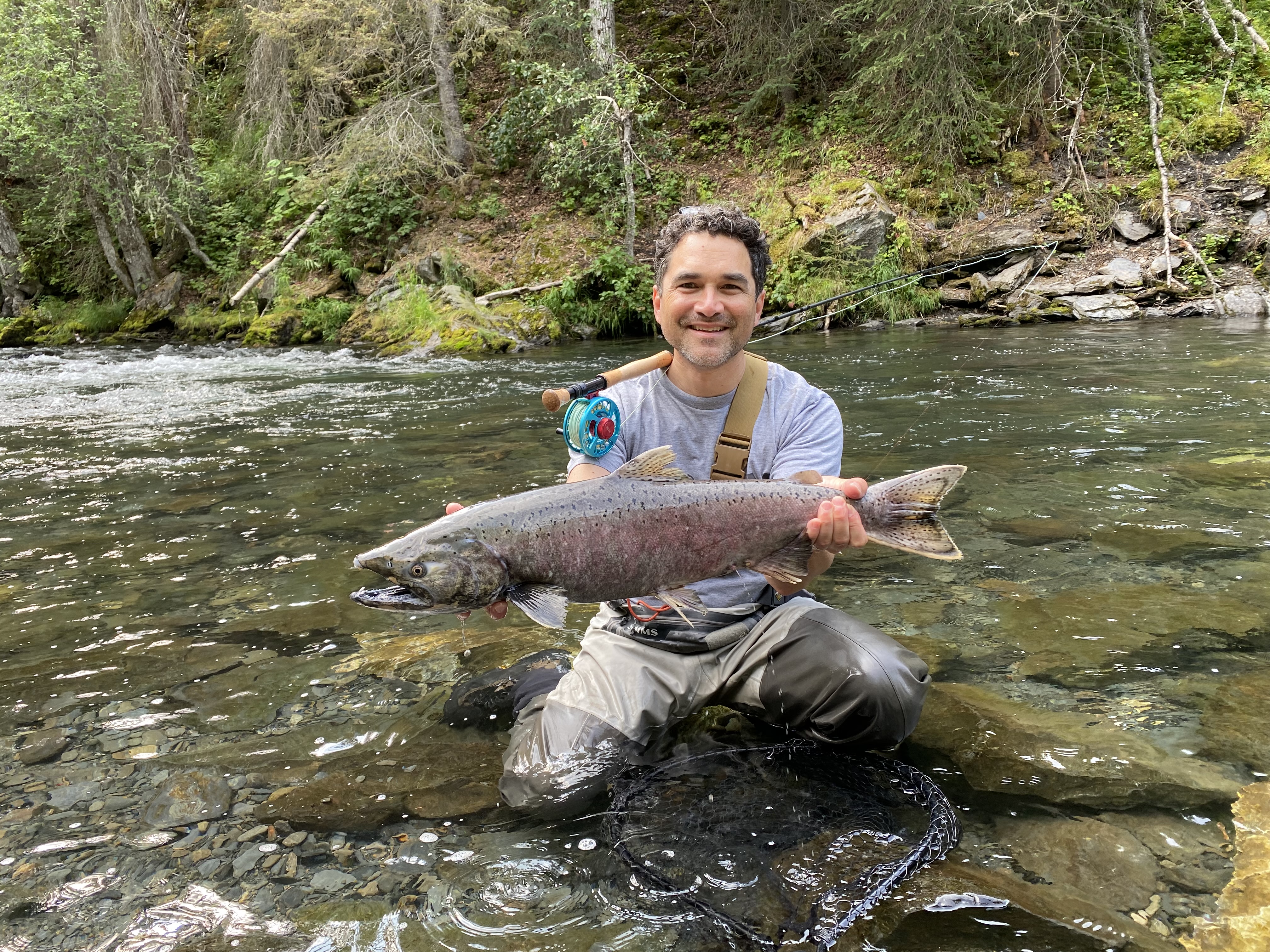Thanks. Beautiful colors on that fish!If for kings, it will be earlier in "season" and hard to get away from crowds no matter where you go. Sockeye are also earlier and IMO more fun catching with normal fly gear. However catching sockeye, even silver, fresh run sockeye is not a game of presenting something they attack or eat. It is a game of "flossing" them for legal hookup status