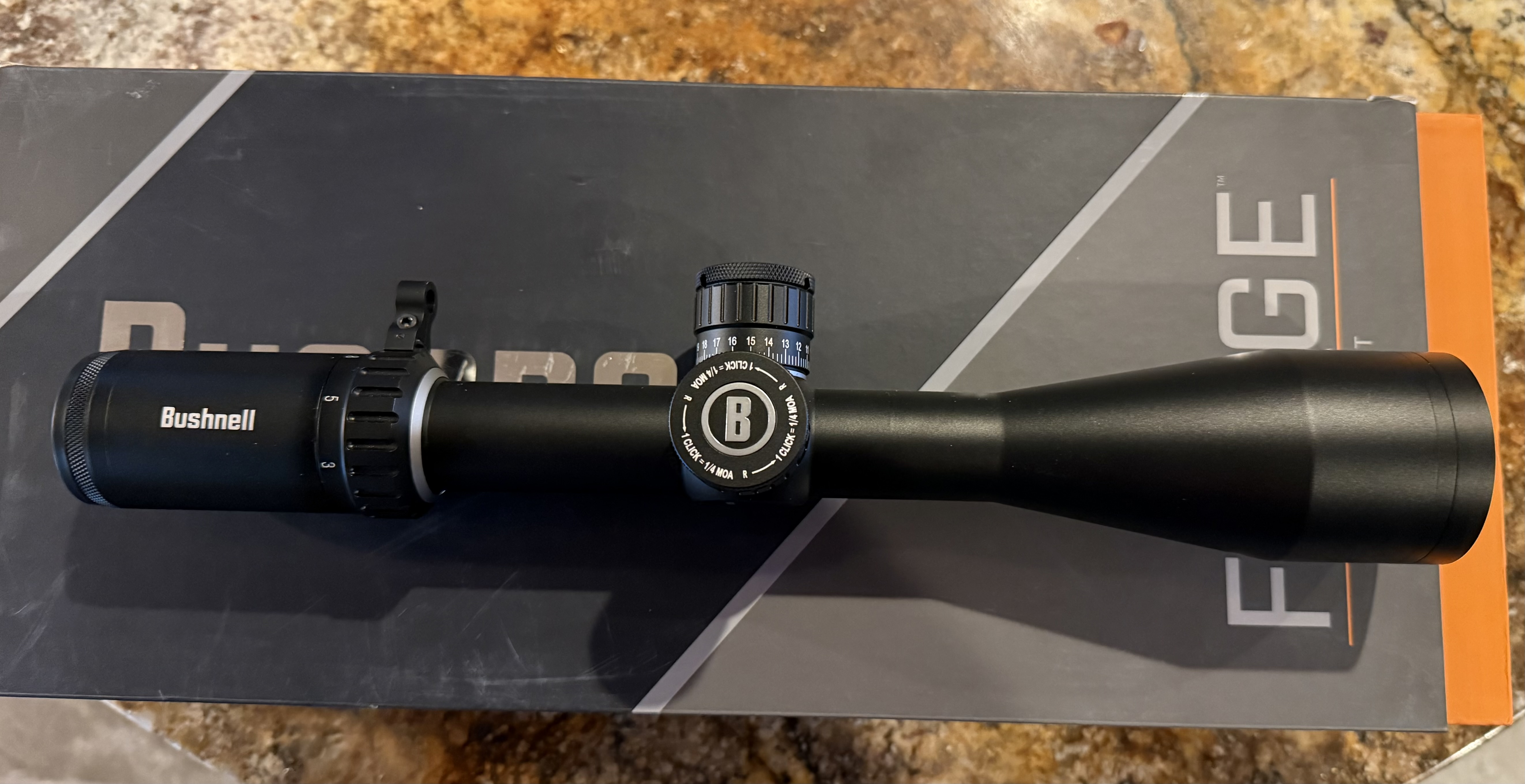 Bushnell Forge 3-18x50 FFP with Deploy MOA reticle. Scope condition is excellent and comes with everything in box from the factory including sun shade, tool, scope cover, lens caps, cloth.