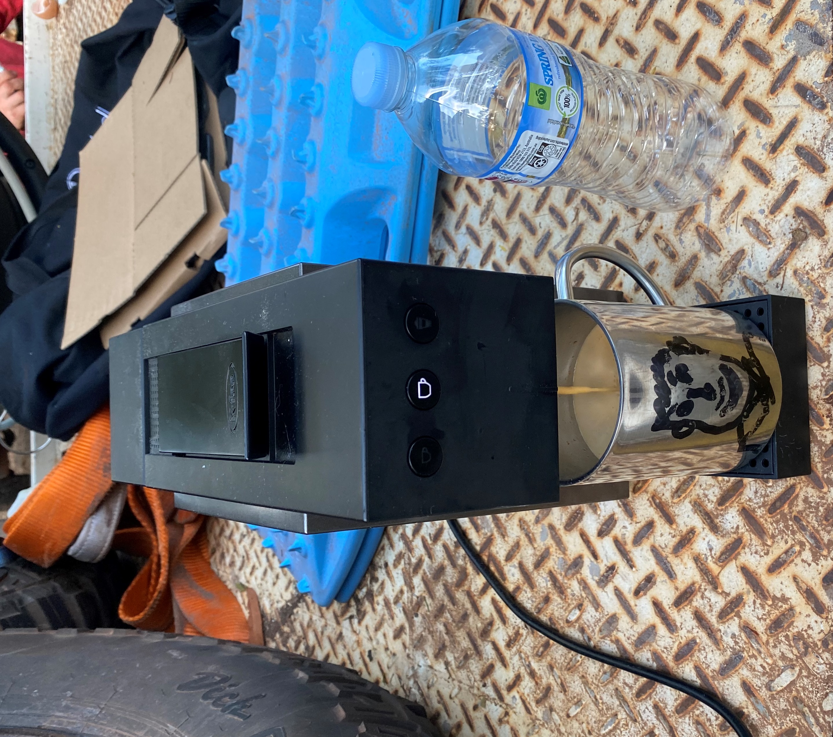These images below are from my recent trip to the top of Australia on a camping trip with my son fishing and hunting. No more generator. We now use 2 X 100ah lithium batteries hooked up to a solar panel on the roof of the vehicle and an 2200 watt inverter to run the pod machine. Quiet, hot coffee anywhere anytime.