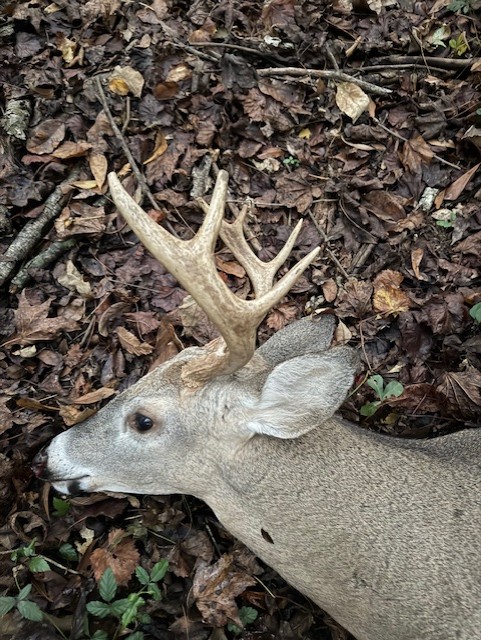 Not the largest bodied buck I have gotten, but certainly the biggest rack. Taken with the Browning A-bolt, JES rebore to 35 Whelen loaded with special order 200gr Peregrine bush master bullets. Certainly did the job and ended things very quickly.