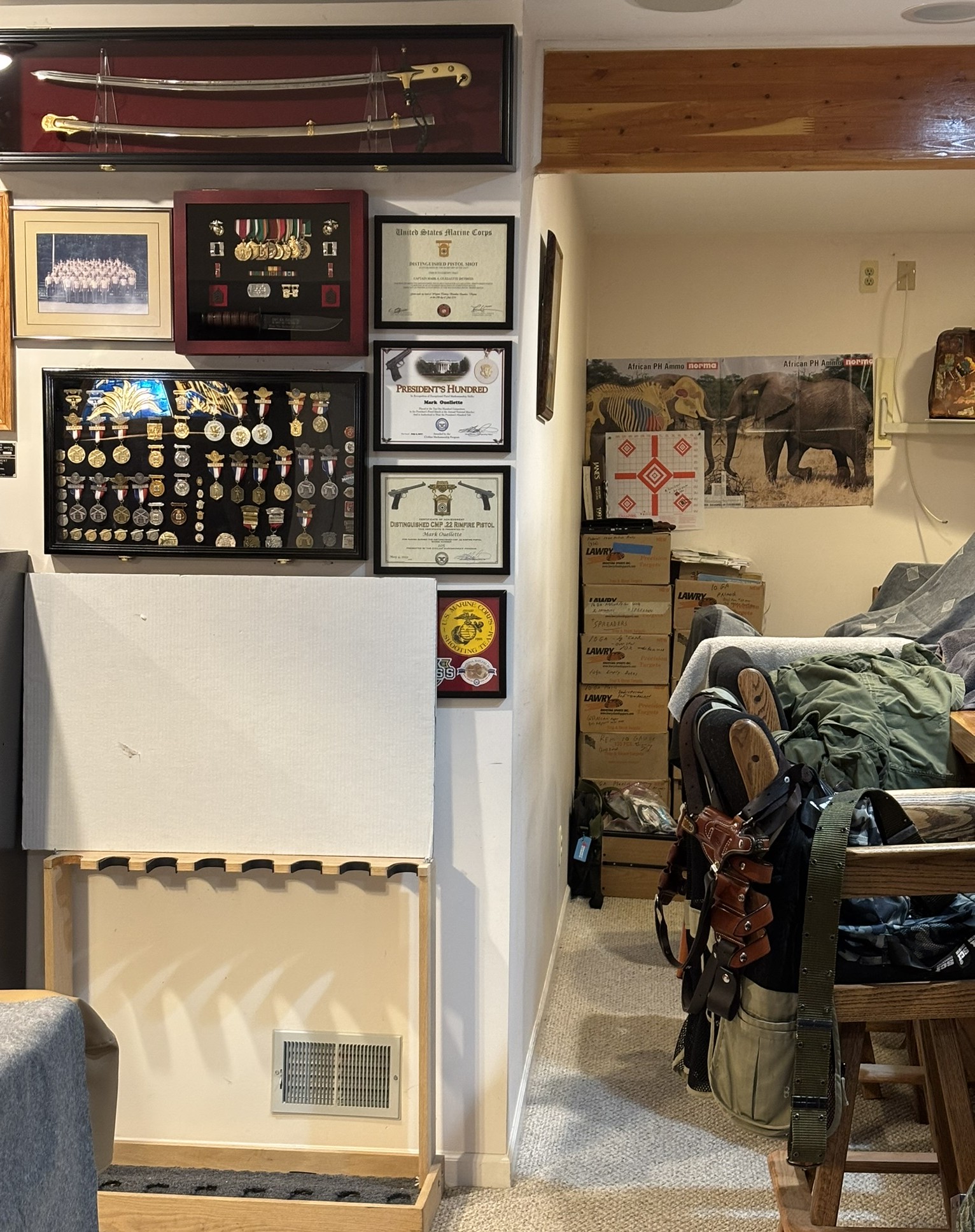 target view from 35 feet away. My "I love me wall" on the left. Clutter is good...
