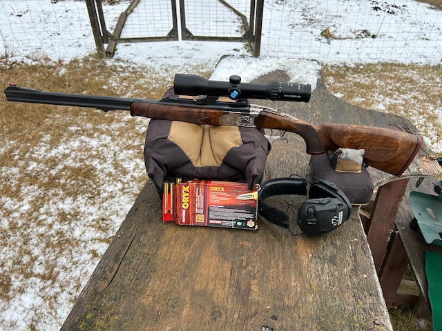 Mine is a little RB Rodda top lever hammer rifle with rebounding locks and 26.5" fluid steel barrels chambered in 303 British, 215gr Woodleigh Weldcores at 2168 fps have shot through every deer or pig I've pointed it at, extremely accurate, point and shoot to a dead 100 yards.
