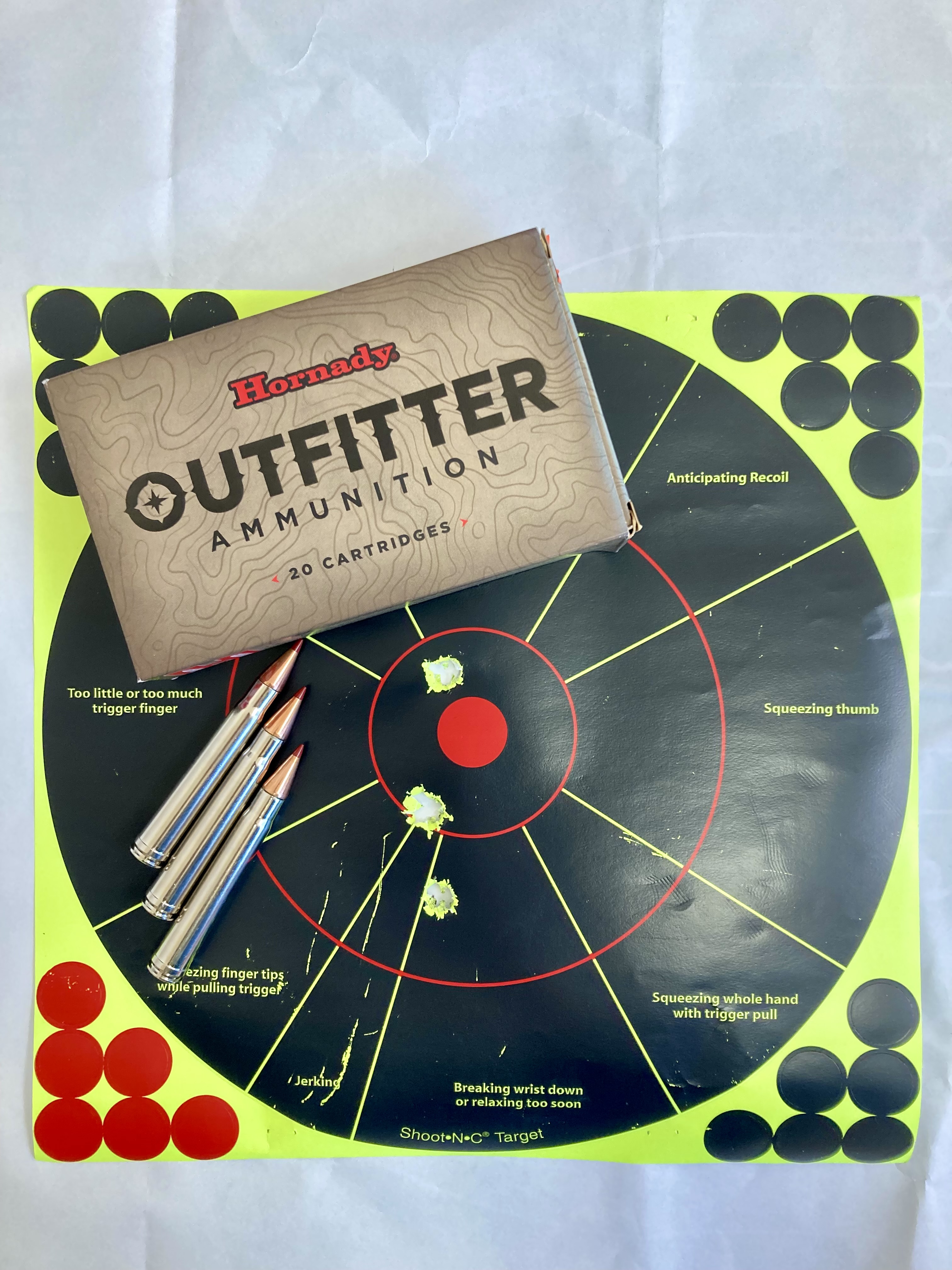 First shots today with the new 375. First 3 were from 50 yards to see where she hits. The last 2 were from 100 yards. All of my other Winchester rifles are New Haven built. This is my only new production model 70. I was a little skeptical about buying a new production Winchester. I examined 3 previous and I couldn’t get a good cheek to stock weld due to my cheek bones. While I was working in South Texas, I found this new Safari Express for 1695.00. A few hundred cheaper that the others I’ve examined. I shouldered it and the sight alignment was perfect. I picked her up and a box of 250 grain Hornadys. Finally got around to sighting it in today. No sight adjustments were required! I’m an open sights hunter some of the time and I couldn’t be more pleased with the fit, finish, accuracy and quality. This rifle will be accompanying me on a Cape buffalo hunt in a couple of years. Bought some reloading components and looking forward to developing up some serious loads.