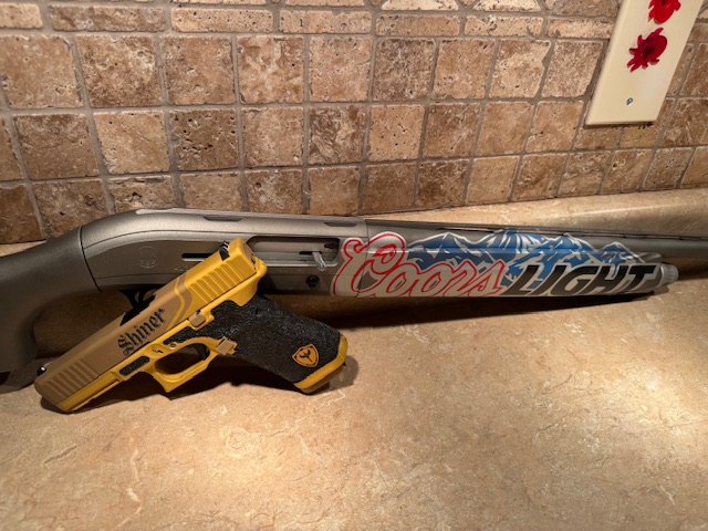 1983-84 Browning hi power full custom. I had this gun laying around in my least favorite pistol caliber caliber .40 S&W. I actually gave away all my .40 ammo so I would never be tempted to shoot it. So this boat anchor was laying around bringing down the GDP of the Jeffrey house and I just couldn't take it anymore.
