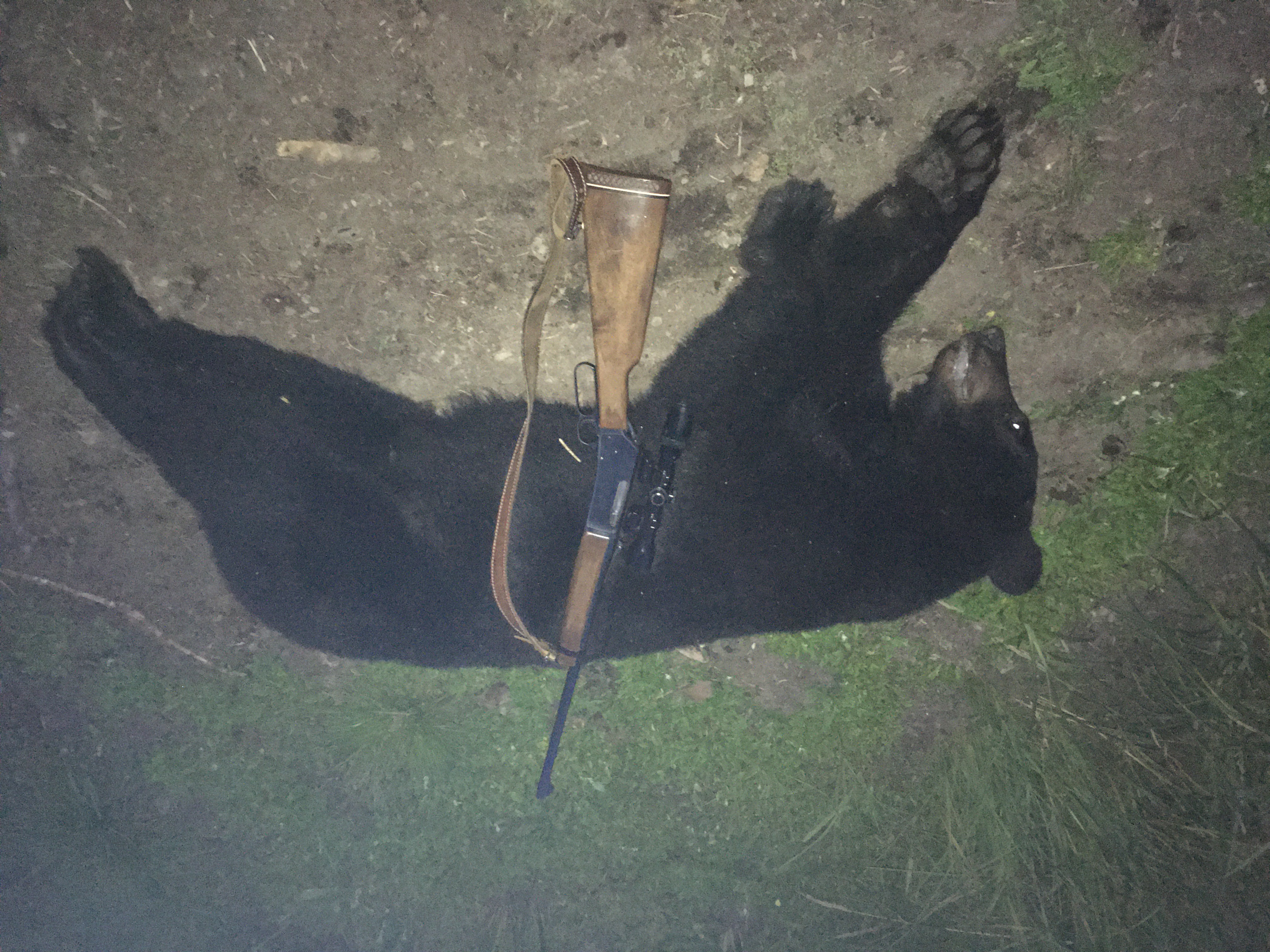 I like a nice fall hide better than a spring hide. I prefer the shorter nap a dense shiny appearance over the long wooly springs...I’ve been getting the hunting bug bad lately and didn’t want to wait until November for deer. So I called a buddy who farms along the forest fringe here in Saskatchewan and asked if he’s seen much bear activity. He said they were starting to hit his oats pretty hard so I should get up there. So I showed up today and he only had time to show me the field as he was harvesting and left me to fend for myself. Just as the light was starting to fade I noticed a whitetail doe and fawns about 300 yards away. All three were staring at something that was out of my sight so I figured I’d better go take a look. When I got into position I started scanning the oats and out of the corner of my eye I noticed the top of a bears head disappearing down into the standing oats. I got ready on the sticks and started to fawn bleat but the bear wasn’t responding. Finally he stood up on his hind legs 60 yards to the right of where I was aiming. Could just see head and neck to his shoulder but let one fly and was rewarded with the thump of a solid hit. Dropped him in his tracks!