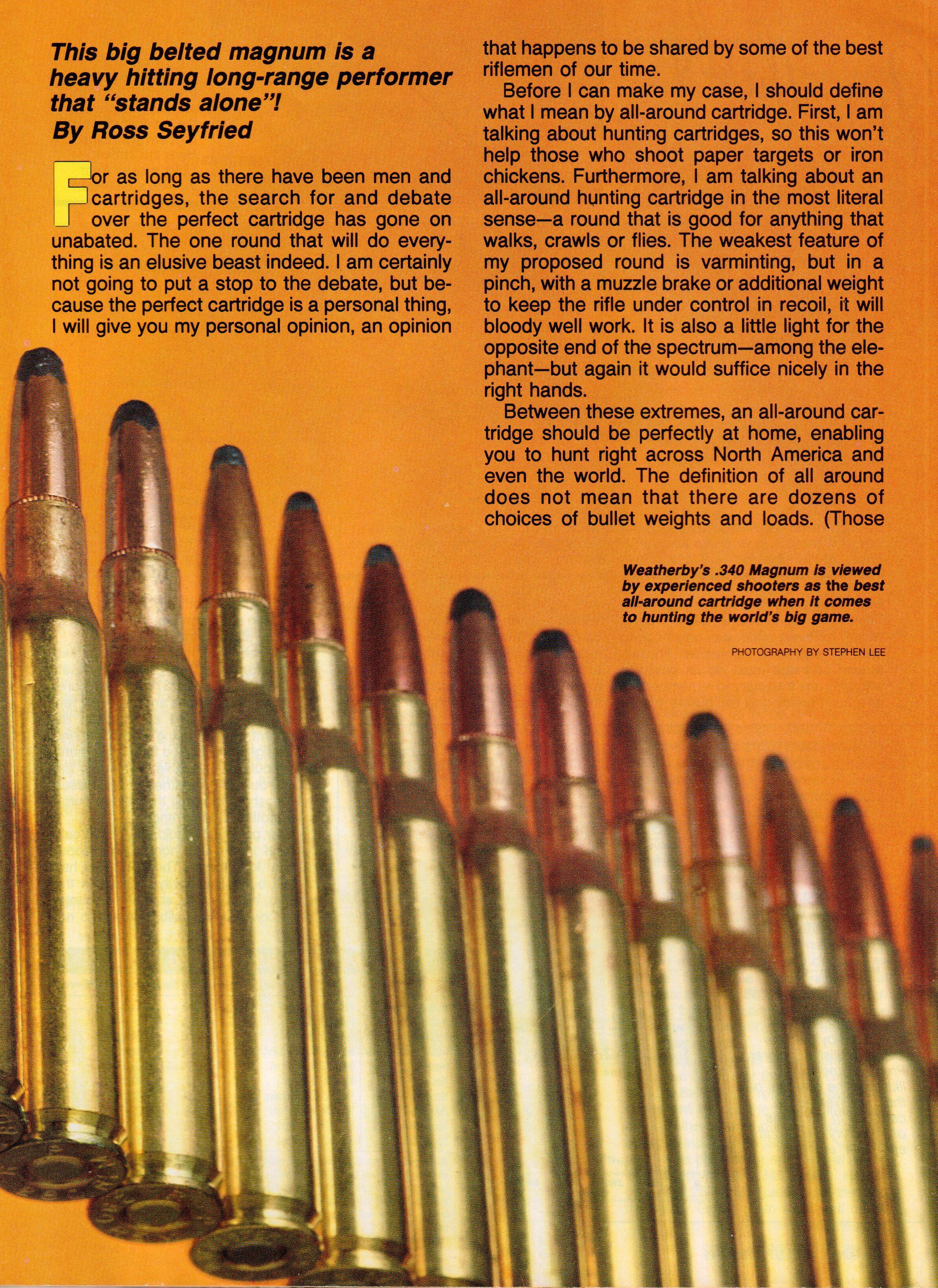 I had been thinking for a long time (many years actually), that I wanted to dig that iconic article from my old G&A stash, and I had even tried a few times, but unsuccessfully. I just spent 3 hours in the attic to finally unearth it, for your reading pleasure. This is a cult article for the lovers of the big .340 and to the best of my research it was not on the internet yet. I hope you enjoyed