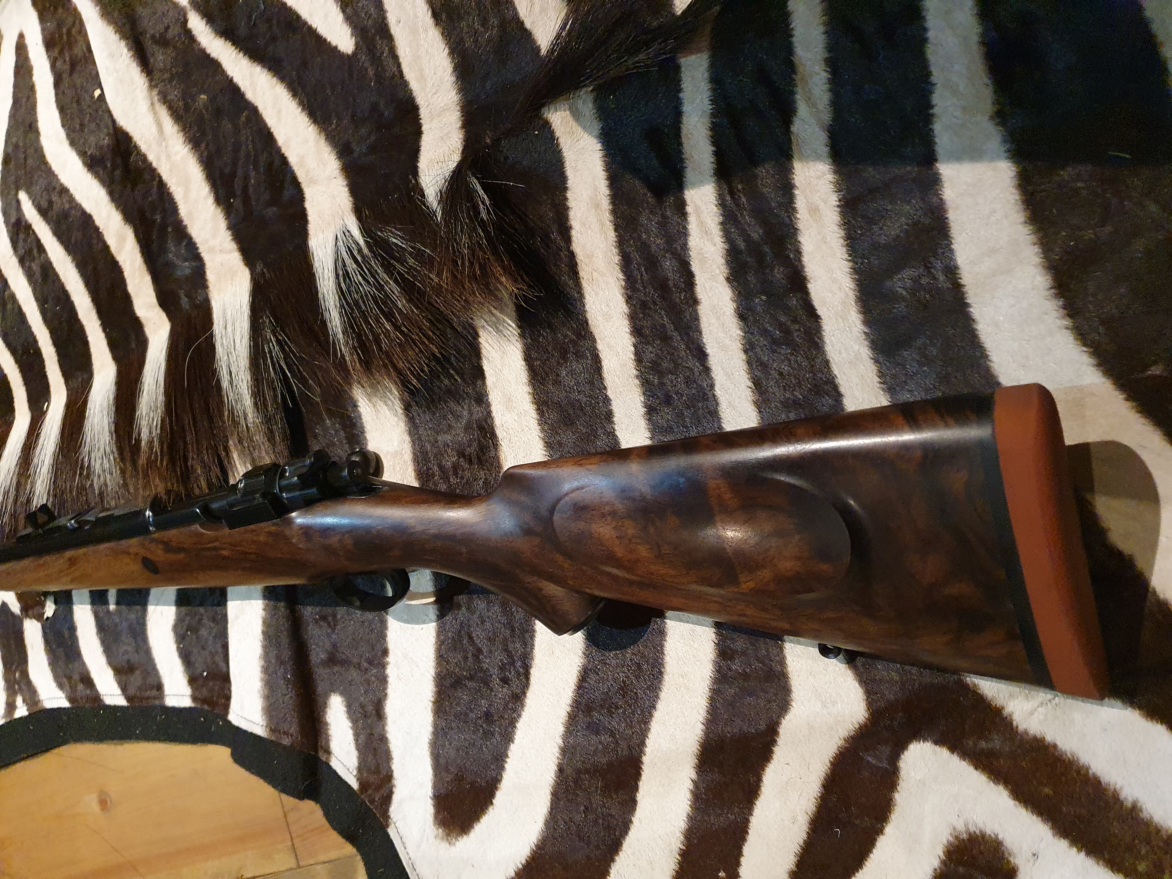 So it is not quite finished,but almost. It still needs to be checkered and some engraving.nothing fancy just 375 H&H on the barrel , serialnumber on the triggergard and 4 cartridges on magazine floorplate.