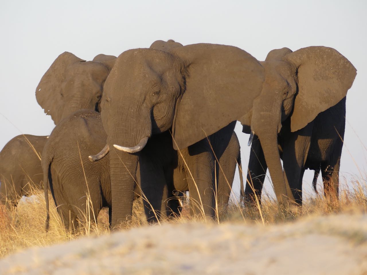 We met Johann at the little airport and drove a half day to the hunting area. We’d hunt in the Kabulabula community conservancy. It covers about 90 sq. km in the Chobe floodplains. What a conservation success story! Namibia has figured out that wildlife is a sustainable, renewable resource more valuable than grazing cattle and goats. Game populations are thriving on the community conservancies. People are learning to appreciate and co-exist with large dangerous game, as long as they get some benefit from meat and hunting fees and employment. We were greeted with the sight of elephants grazing with the local cattle right in front of our thatched huts. Lions roaring and hippos grunting in the moonlight made for another sleepless night.