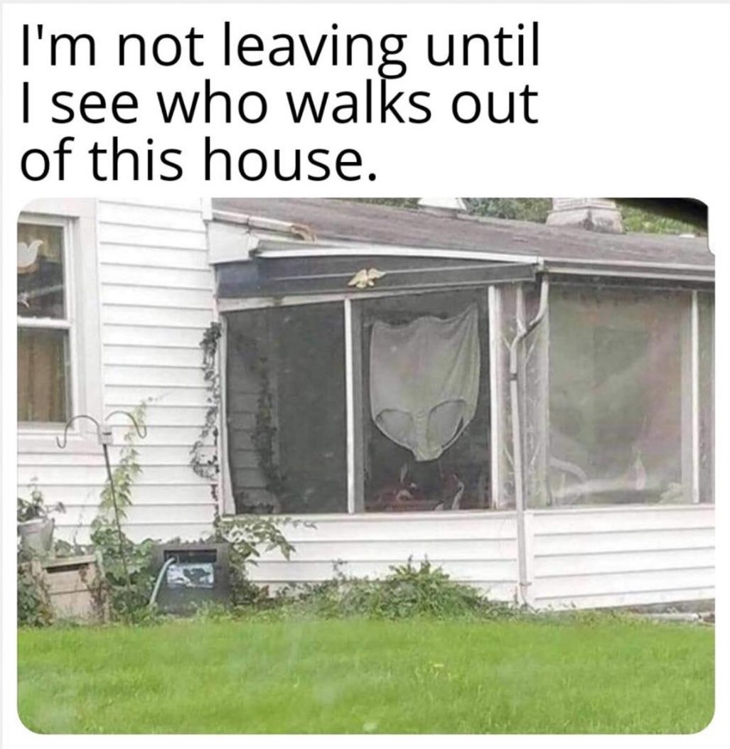 Looks like they are drying a tent with two stovepipe holes!I’m leaving because I don’t want to see who walks out!!!!