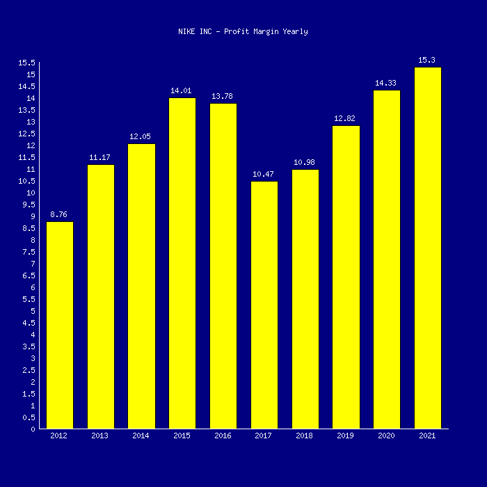 This is a chart of Nike's net margin per year from 2012 thru 2021. Nike is publicly traded so these statistics are available to anyone. It is trading at around $112 dollars a share which is about right for a business with its market cap. Like most profitable business ventures it is trying for 15% net and averaging around 12%. Hardly what I would call robber barons at work.
