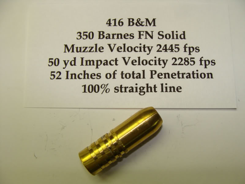 The 350 Barnes will do anything you need to do in .416, and with the slower twist that you allegedly have, then probably a better choice.........