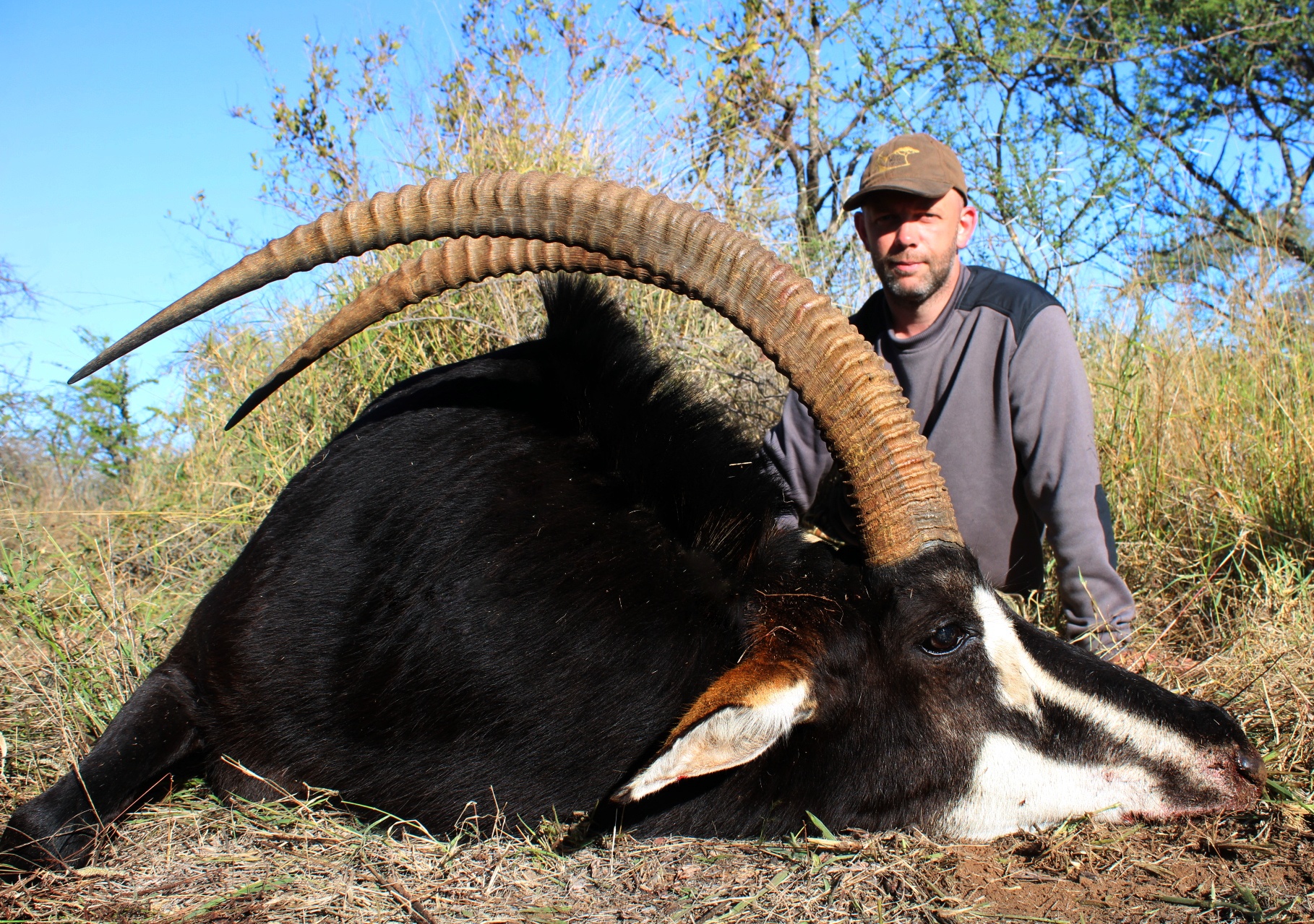 Our Sable hunting is something we are very proud of at Bayly Sippel and something we have put a lot of thought into over the years. We have some truly incredible genetics on our properties, not only in horn length but also in their coloration. Our bulls are typically that classic pitch black coloration upon reaching maturity, and this is something we have focused on through years of management! We also hunt bulls with a focus on age. Sable are a fast growing animal and as a result can be hunted whilst still a bit on the young side. We aim to hunt bulls that are past this younger stage and hopefully with some secondary growth! We hunt large self sustaining herds on our various exclusive properties. Some of which are over 12,000 acres. On one property alone we have a self sustaining population of over 120 animals. It is truly fantastic to drive along and see breeding herds of Sable, lone bulls, bachelor groups and nursery groups.