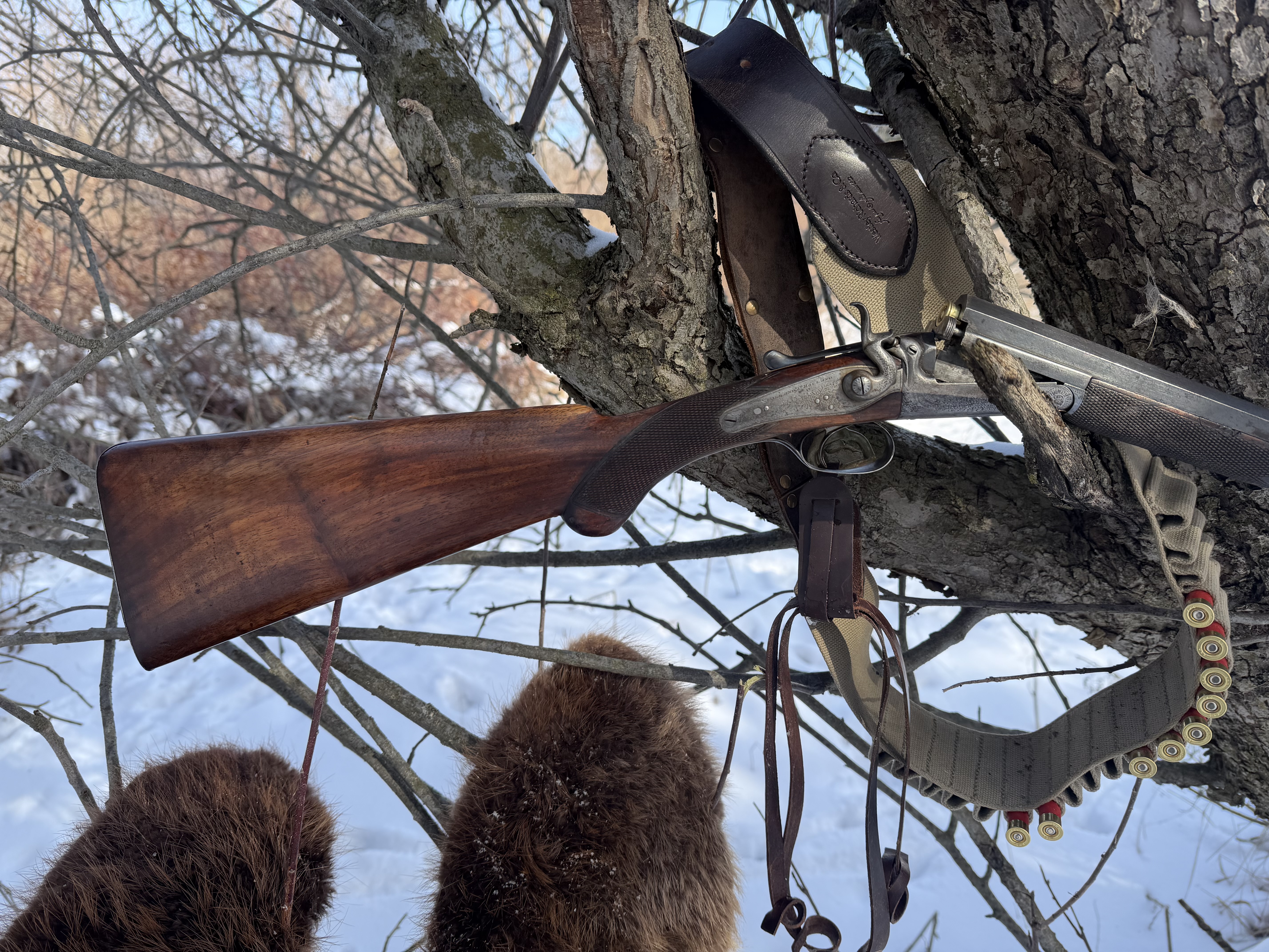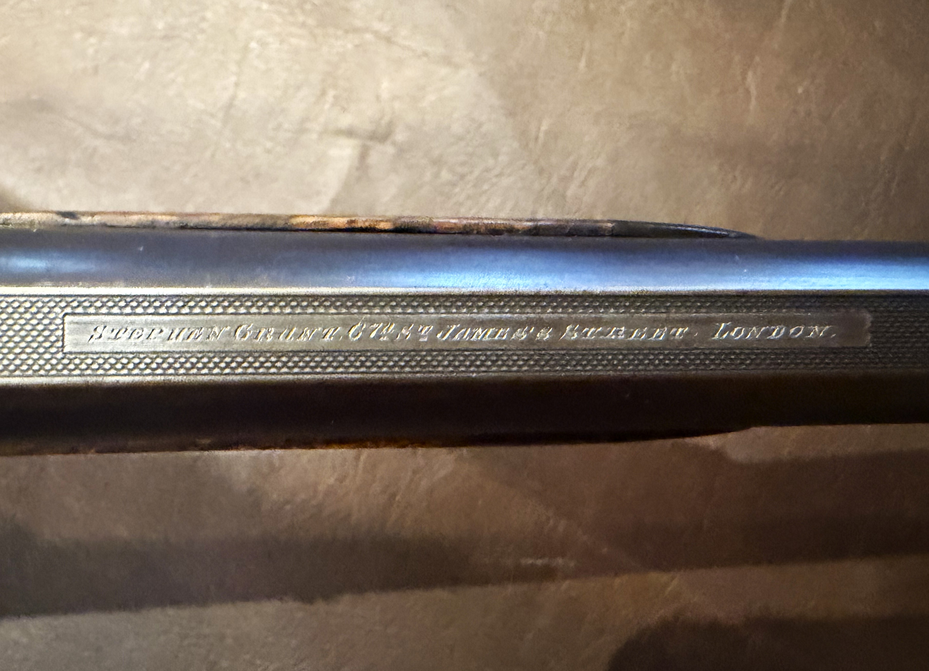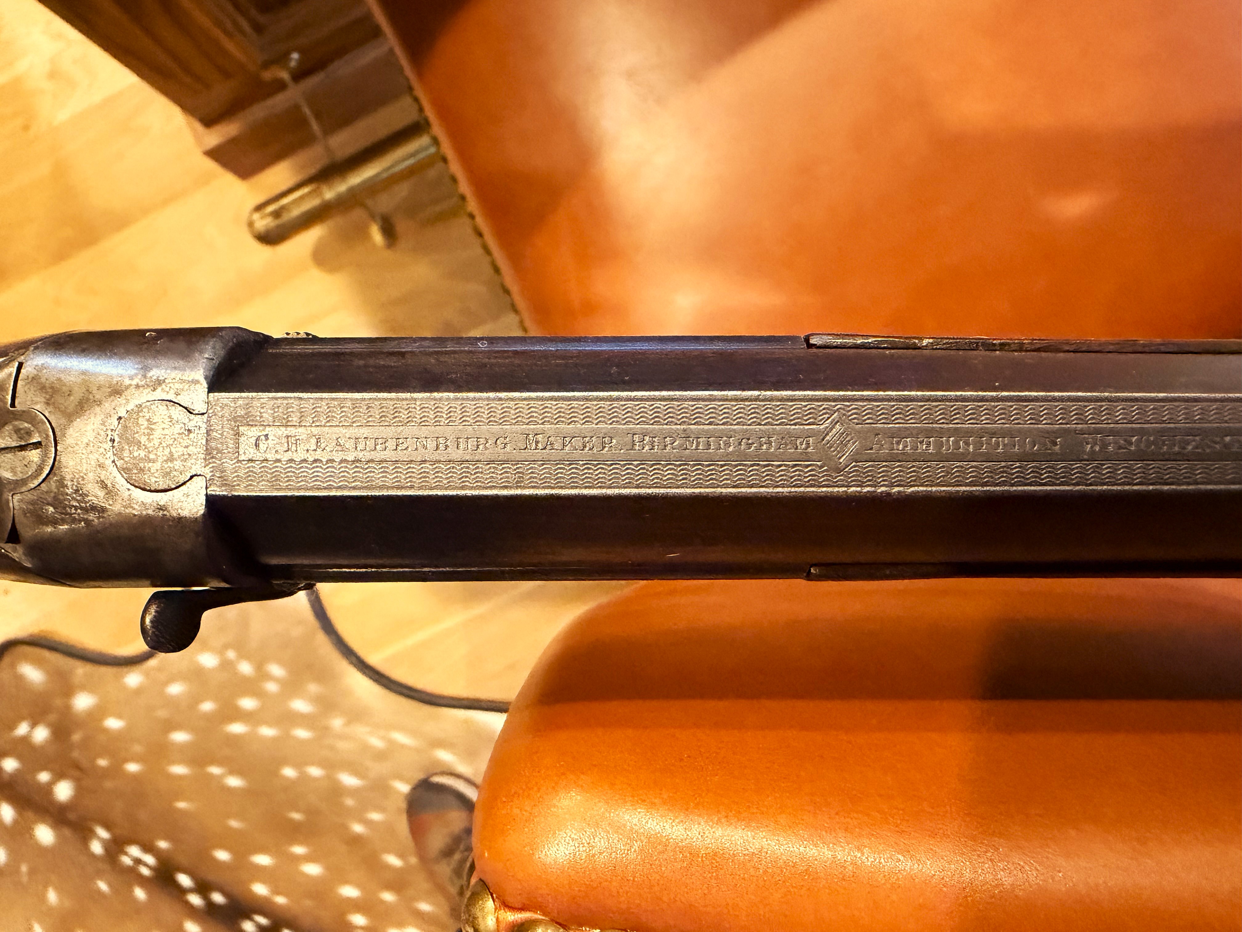 This is my rook "stopping rifle." Plainer and clearly more extensively used, it was built around the same time as the Grant. I have not been able to identify anything about this maker, but the break open action with readily recognizable top lever is likely Westley Richards. The reason I have kept it is because of the chambering. It was built in "Winchester Caliber 44," or as we would now call it 44-40. I have never seen another in this chambering by any maker. It will decisively stop an enraged or wounded cottontail or armadillo.