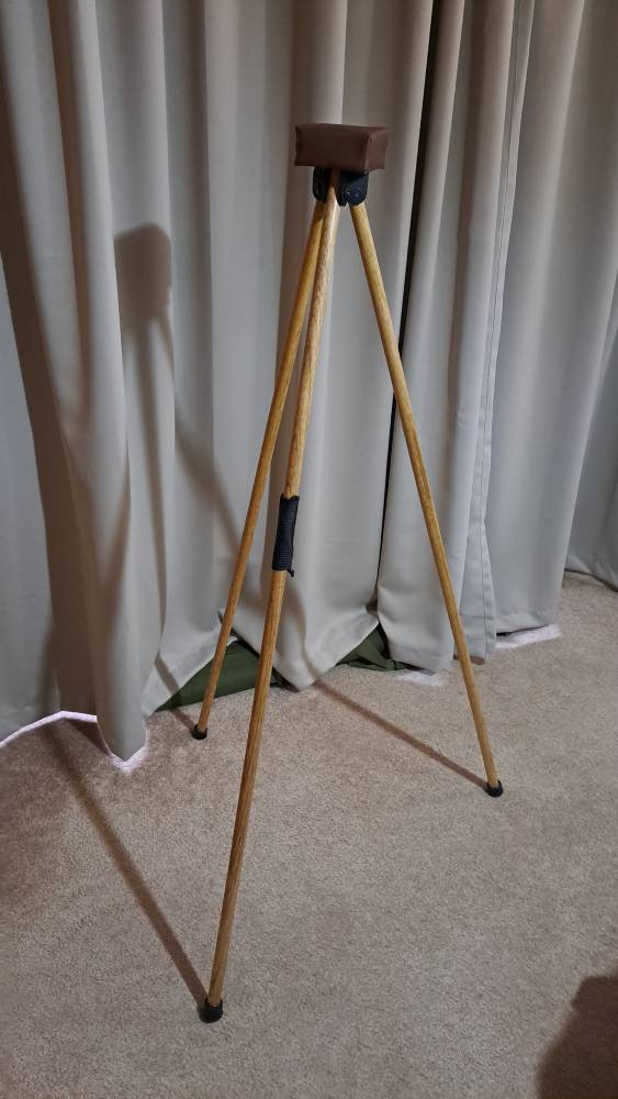 For example here is a pair i made last week for my upcoming hunt end of April. As mentioned i am from Africa and have shot off of many sticks, so i decided to combine everything i like into 1 shooting stick. I dont like the handle of the trigger stick, i dont like the standard 'V' or ' U' nodge rest for the rifle and i dont like that quad sticks cant stand alone. WHAT i do like is having a flat base such as a sand bag or when shooting off of my pack. I like that a tripod can stand alone without my support. I like that i can QUICKLY deploy the tripod and get on it and comfortable. And lastly i like the "traditional " wooden look, so hence i made a wooden tripod with a flat base with a sponge covered in artificial leather. With a parracord handle to prevent rattle noise(and you never know when a bit of rope can come in handy) and rubber feet for non slip regardless of terain.