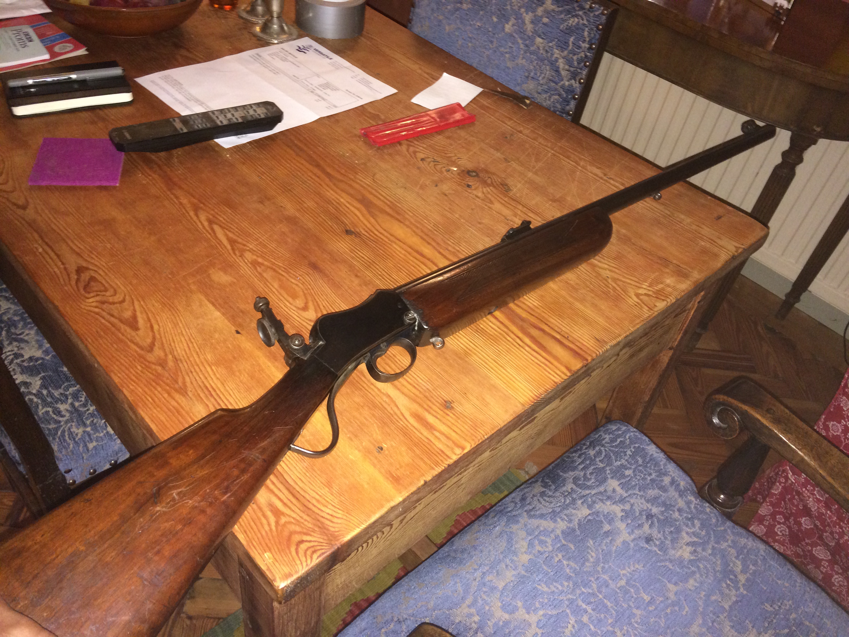The gun jammed quite a bit, and had a cheap, 3/4" tube scope on it. I took the gun apart and cleaned what looked like several decades worth of crud from the inner workings. I gave the barrel a good scrubbing, too. While the gun still jams occasionally, it's not near as bad as it once was. I really didn't like the squirrels and oak leaves that were branded in the grip and forearm.