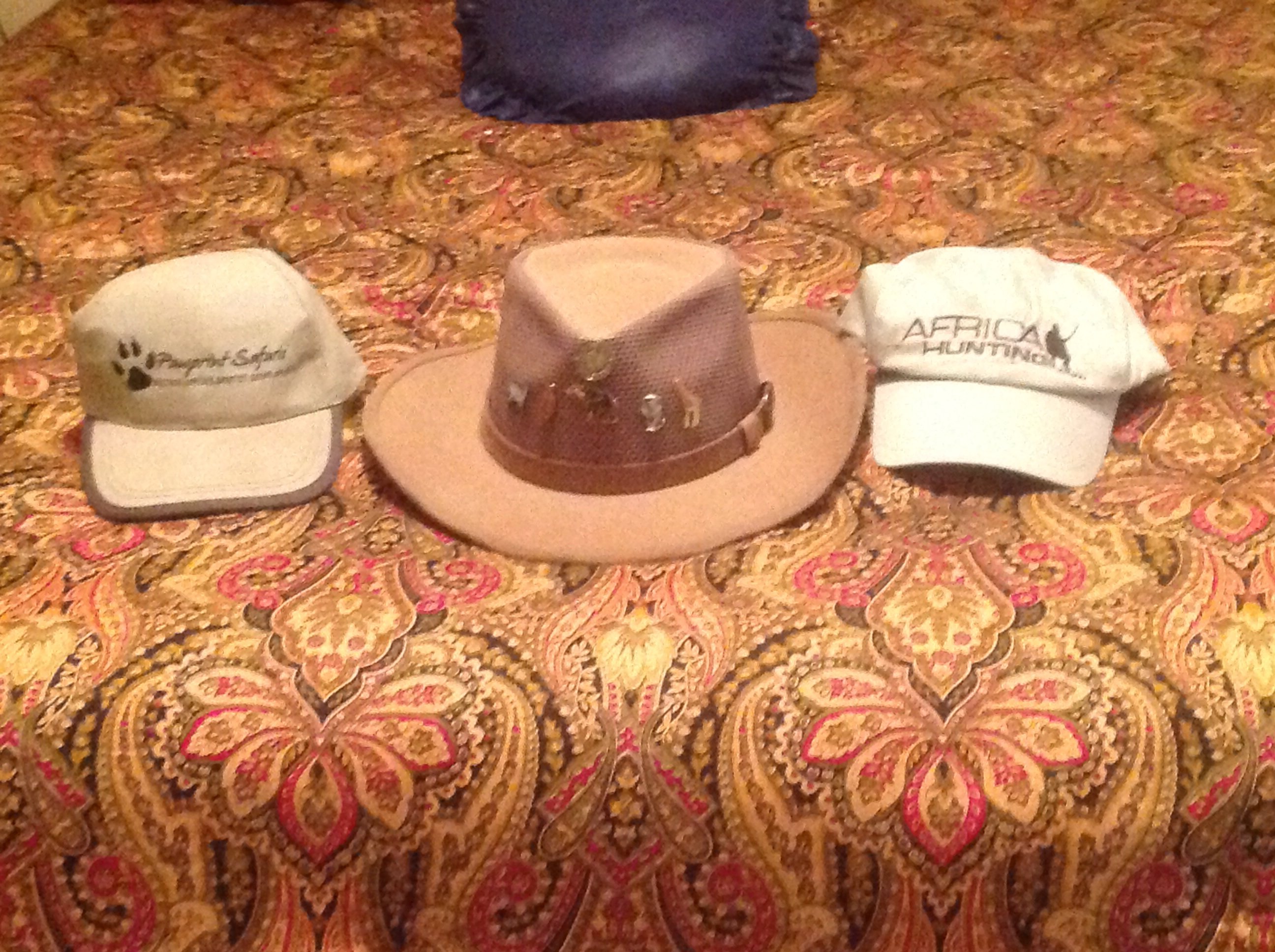 My favorite three hats at the moment. Note the pins on the middle hat! They are hard to find so if anyone knows a place to order various African animals let me know!