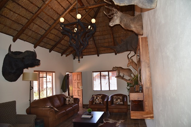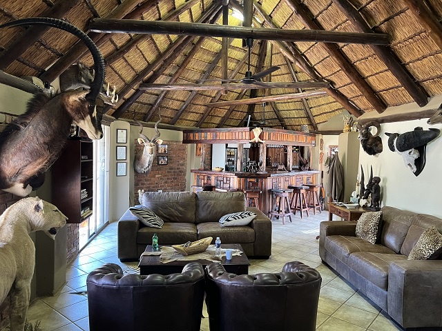 The lodge was great. Several bungalows for the hunters to stay in. There are also 2 buildings, one with the kitchen, bar, and dining table and a seating area. There is another hang-out room with a TV and couches. There is a covered outdoor seating area, as well as the firepit / braai area. Every evening when we got back to the camp, there was a fire waiting for us, with beer and booze as well as appetizers.
