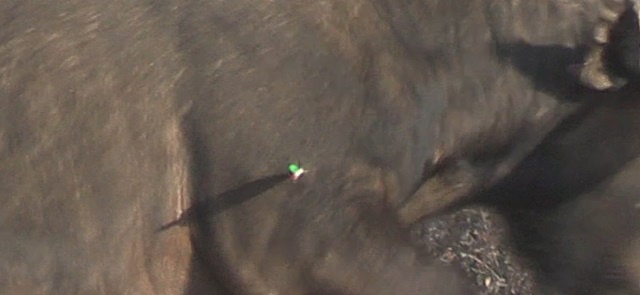 ), the cow dropped. Then, she got up and hauled ass. Now, I thought maybe he went high shoulder but too high, but apparently he was aiming between the eyes and went a bit low/wide. We get out and look for a while, no wildebeest. Stefan sends his trackers out, they turn up nothing as well. So we will keep an eye out for this one.