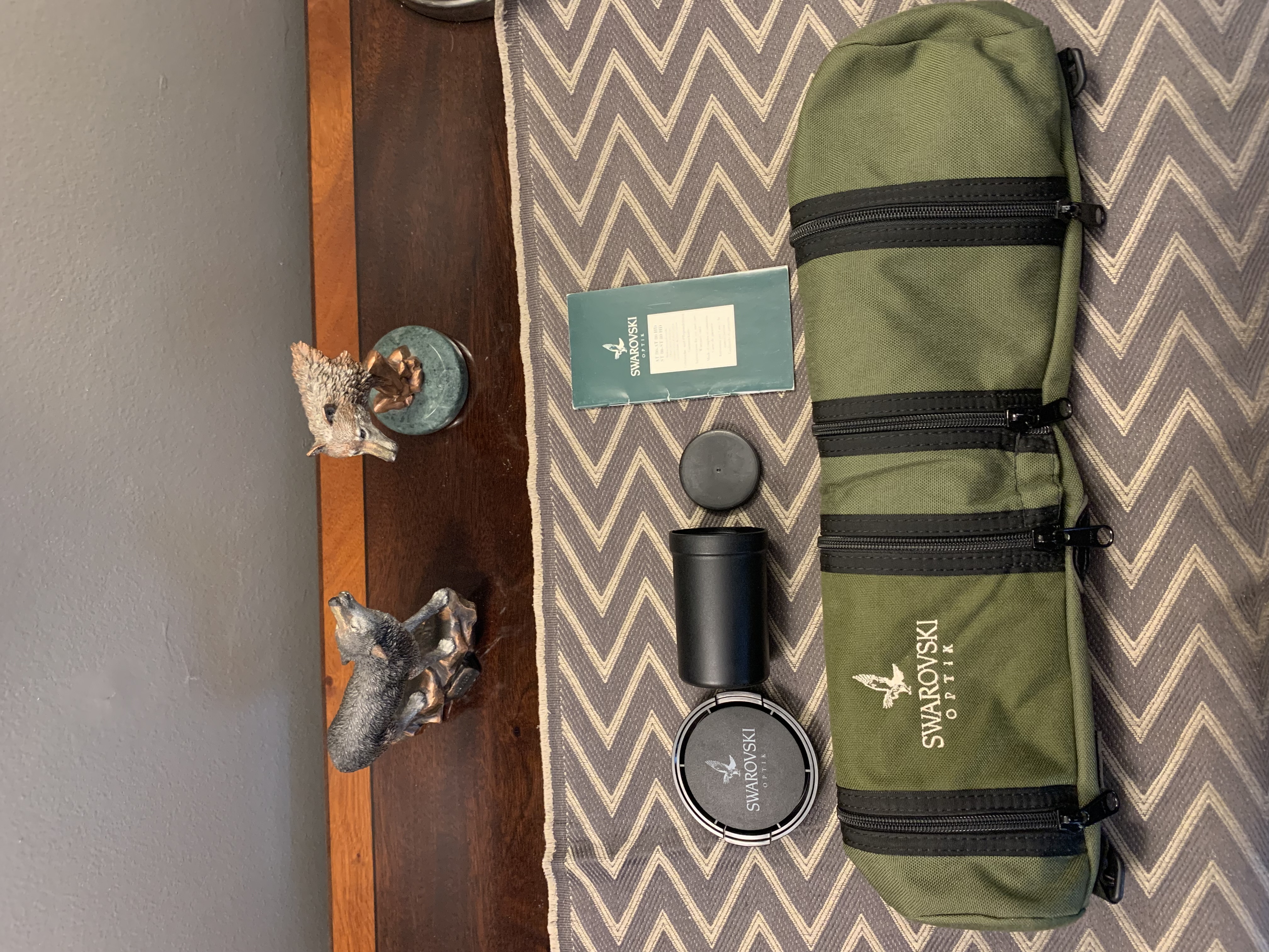 Swarovski Habicht AT 80 20-60x80 Spotter, with Swarovski cover, cover sheds black dust, but will protect scope nicely, as can be seen in pics.