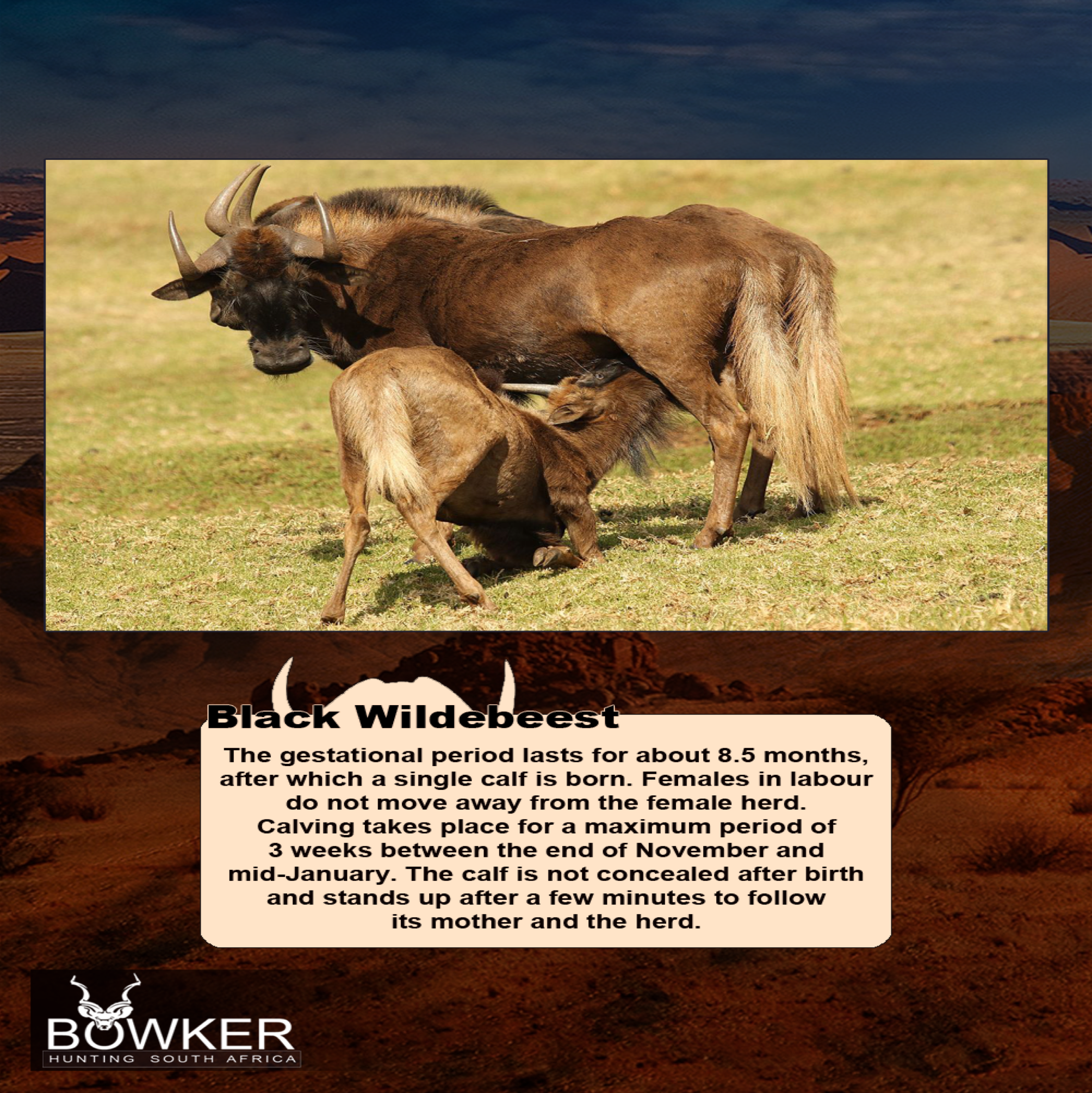 Hunting black wildebeest is most likely best pursued during the morning or late afternoon while the herd is grazing. During cool weather, they will graze any time, but when it is warm, they tend to rest during the hottest part of the day.