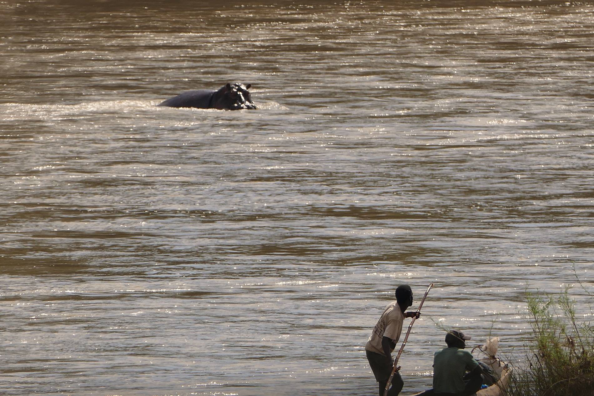 One of the deadliest animals around here is the Hippopotamus or "mvuu" as the locals say. Fisherman in confrontation with two Hippos